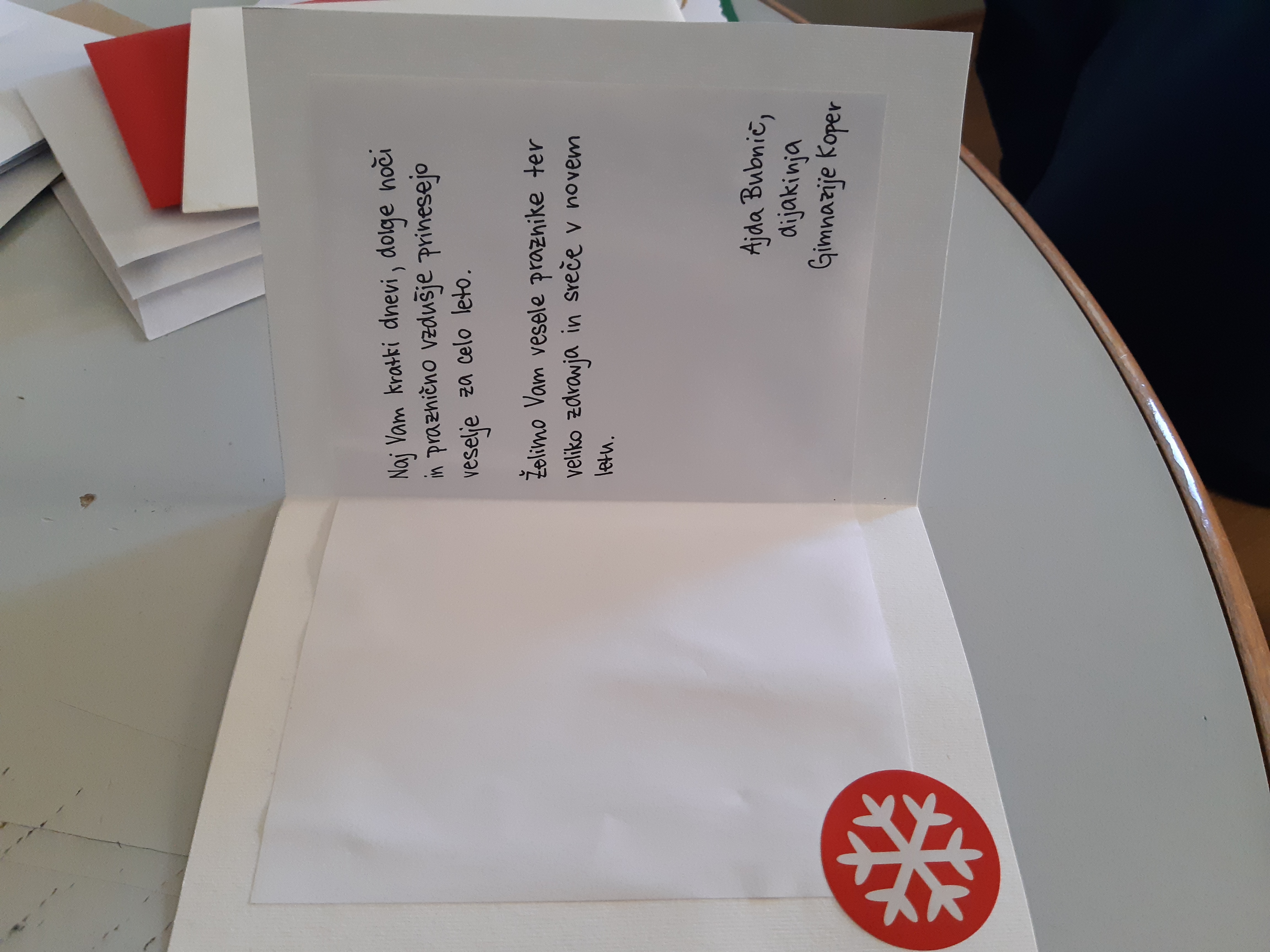 V Skupnosti dijakov Gimnazije Koper oskrbovancem domov za starejše občane želimo vesele božične praznike in srečno ter zdravo prihajajoče leto 2021.