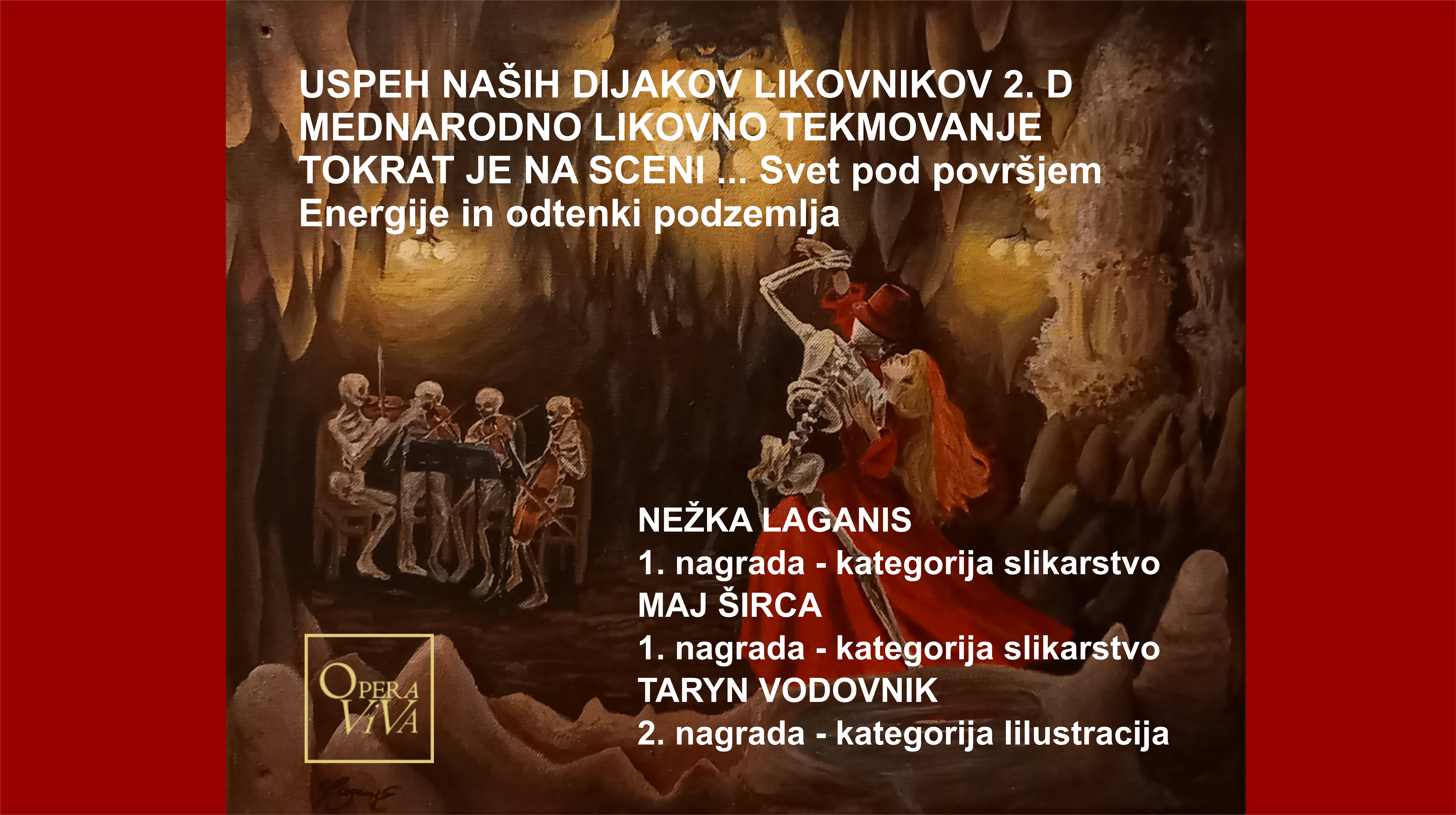 USPEH NAŠIH MLADIH LIKOVNIKOV, DIJAKOV 2. D-ODDELKA, NA 18. MEDNARODNEM LIKOVNEM TEKMOVANJU QUESTA VOLTA METTI IN SCENA ... IL MONDO DI SOTTO – 18^edizione/TOKRAT JE NA SCENI ... Svet pod površjem – 18. izvedba, Energije in odtenki podzemlja, v organizaciji Opera Viva (Trst)