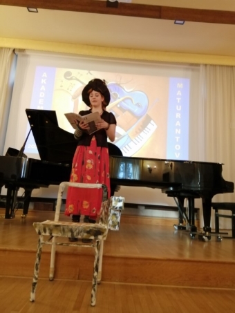 »Učimo se v šoli, katere moto je, da živimo izven okvirjev, samo da ne uporabljamo absurdnih slik ali pa galerije modrcev …, zmešnjava je del nas, ki smo danes tu,« je povedala Žanamari Koren v uvodu v Akademijo maturantov programa Umetniška gimnazija, likovne in glasbene smeri, na Gimnaziji Koper, ki je bila v petek, 24. 3. 2023, v dvorani Glasbene šole Koper.