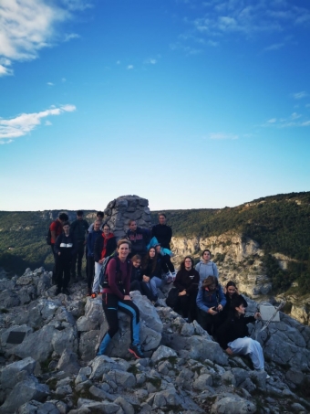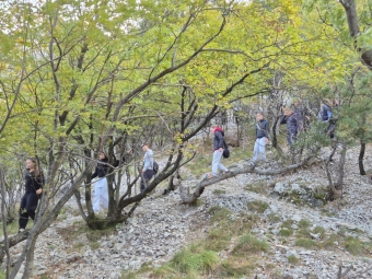Sprehodili so se po dolini reke Glinščice in se mimo cerkvice Marije na Pečah povzpeli na vrh Cippo Comici, kjer je postavljen spomenik Emiliu Comiciju, slavnemu tržaškemu alpinistu.