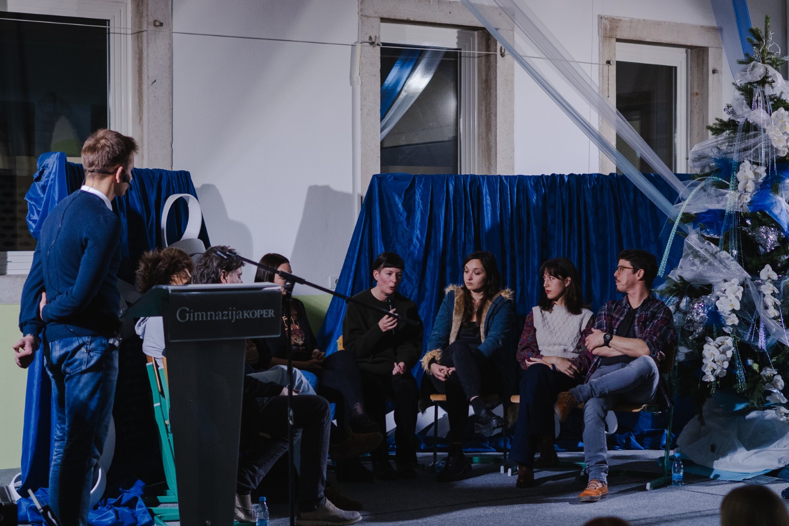 Na okrogli mizi so se nam pridružili bivši dijaki Andraž Jež, Vasko Vidmar, Zara Kastelič, Martin Peca, Nina Mrđenović, Žana Šuran, Tamara Mihalič, Naja Stanić, Kei Krameršteter in Nina Borg. Pod vodstvom dijaka Darijana Savanovića so odgovarjali na vprašanja o svoji današnji karieri, izkušnjah in znanjih, ki so jih pridobili v srednješolskih letih v umetniškem oddelku likovne smeri.