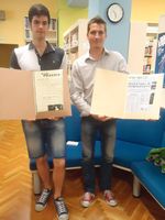 Ob koncu pouka in pred praznikom državnosti sta nas obiskala naša bivša dijaka, sedaj že študenta, Uroš Ferrari Stojanović in Marko Krmac. Poleg svojega obiska sta nas razveselila še s prav posebnim darilom. Prinesla sta NUK-ove mikrofilmske faksimile (1) posebne izdaje Slavnostnega Dela, ki je bilo kot edino v zgodovini tiskano in v prodajo izdano zvečer, in sicer na veliki dan 25. junija 1991, z jarko sijočo naslovnico SLOVENIJA JE SAMOSTOJNA, istočasno s tem, ko je takratna skupčina vseh zborov proglašala Deklaracijo o neodvisnosti Slovenije in Temeljno ustavno listino o samostojnosti in neodvisnosti Republike Slovenije, (2) faksimile naslovnice redne izdaje naslednjega jutra s prav tako visokoletečim naslovom Republika Slovenija – samostojna in neodvisna država ter (3) faksimile celotne izdaje z dne 26. decembra 1990 z zjutraj še neuradnimi izidi slovenskega plebiscita o samostojnosti in neodvisnosti in (4) faksimile celotne izdaje Ljudske pravice z dne 6. oktobra 1954, dan zatem, ko je bil podpisan Londonski memorandum, ključni dokument ureditve tržaškega vprašanja in priključitve B-cone Svobodnega tržaškega ozemlja k matični domovini, tedaj uradno Ljudski republiki Sloveniji.