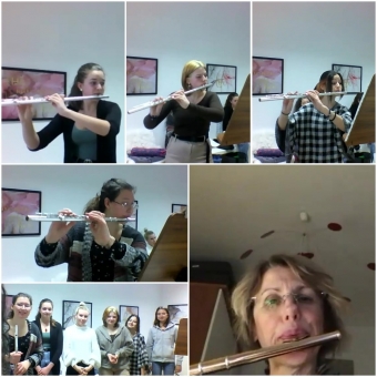 »V torek, 25. 1. 2022, smo se dijakinje flavte udeležile mini masterclassa na daljavo s profesorico flavte na akademiji za glasbo v Zagrebu, Renato Penezić. Tako sem imela priložnost nadgraditi svojo skladbo in se poglobiti v detajle. Izvedela sem nekaj novih stvari, nekatere pa sem slišala ponovno ter jih tako še bolj utrdila. Ta intenzivna ura je bila nekaj zanimivega tudi zato, ker je profesorica govorila v hrvaščini in sem morala biti veliko bolj zbrana, če sem želela slediti vsem popravkom in nasvetom. Bila je zelo prijetna izkušnja.« Manca Fajdiga, 1. D
