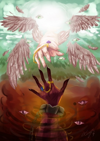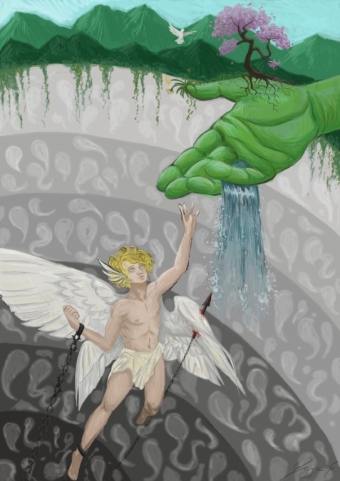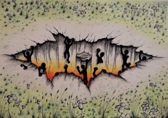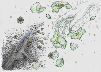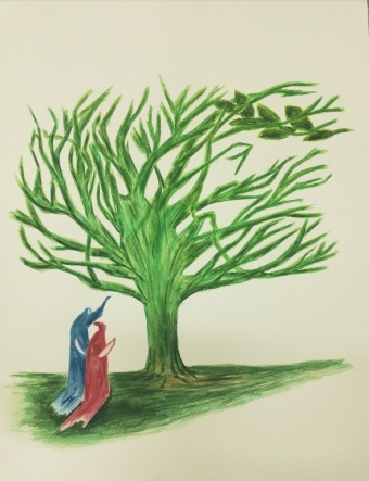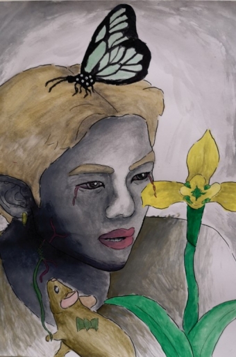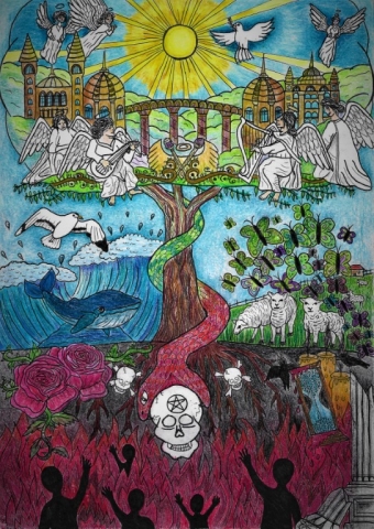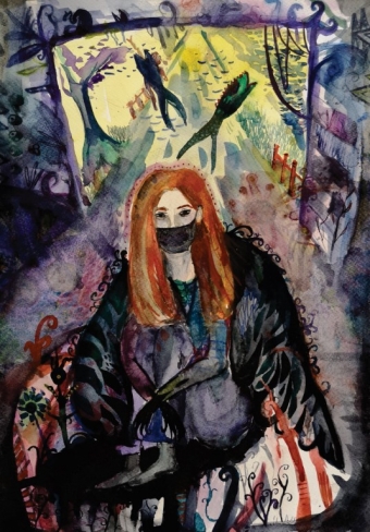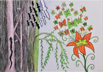 Gaja je svoji risbi dala naslov Od temačnega proti svetlobi. Prikazala je morsko nevihto z veliko dežja in temnimi oblaki. Medtem ko je nevihta še daleč, sonce sije na rožo v ospredju, ki predstavlja svetlobo in življenje.