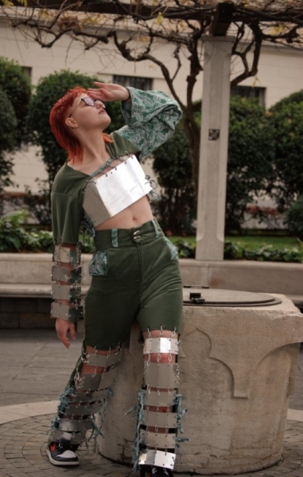 Laura opisuje svojo kreacijo z naslednjimi besedami: »Oblikovala sem unikatno oblačilo, ki predstavlja upanje za našo Zemljo, da se izvleče iz uničujočega industrijskega sveta, kar ponazarjajo kovinski deli, in doživi preporod, ki ga predstavlja tekstil naravni z naravnimi vzorci.«